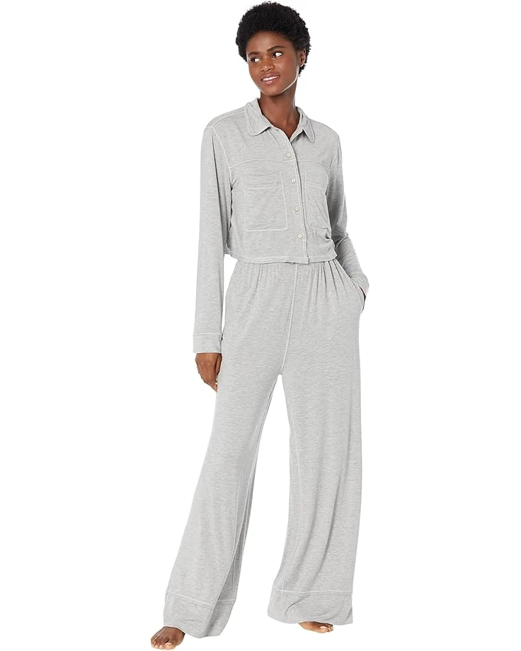 Level up your loungewear game by wearing the super-cool and comfy Free People™ Essential Pajama Set.SKU: #9812589Two-piece set includes a top and a bottom. Top with a classic spread collar and long sleeves. Center-front button closure. Two patch pockets on the front. Straight hemline. Bottoms with an elasticized waistband for a snug fit. Wide-legged pants. Two hand pockets for added convenience. 100% cotton. Machine washable. Imported. Product measurements were taken using size SM. Please note that measurements may vary by size.If you’re not fully satisfied with your purchase, you are welcome to return any unworn and unwashed items with tags intact and original packaging included.Measurements:
