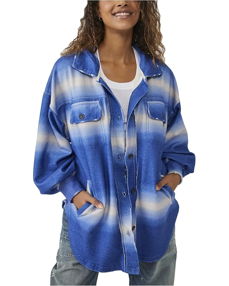 Get a perfect casual wear for your travel and holidays, adding Free People™ Printed Ruby Jacket.SKU: #9794106Loose fit.Spread collar.Button-down closure placket.Long sleeves with buttoned cuffs.Pockets: