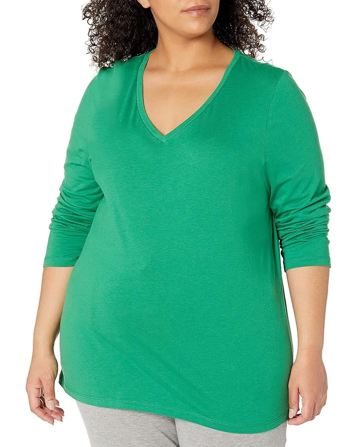 60% Cotton, 40% ModalSKU: #9634285CambodiaMachine WashHUE Solid Long Sleeve V-Neck Tee is roomy and comfortable for a great night’s sleepConstructed of a soft cotton blend materialFeaturing long sleevesV-NecklineThis tee is a must-have for your sleepwear collection