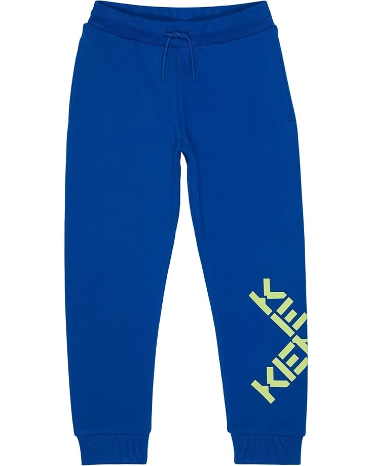Feel the supersoft comfortable touch wearing Kenzo Kids™ Sweatpants Logo On Leg (Little Kids/Big Kids).SKU: #9819141Relaxed fit.Pull-on style.Elastic waistband with drawstring.Ankle-length legs with ribbed cuffs.Brand logo script on left leg.Fabric: