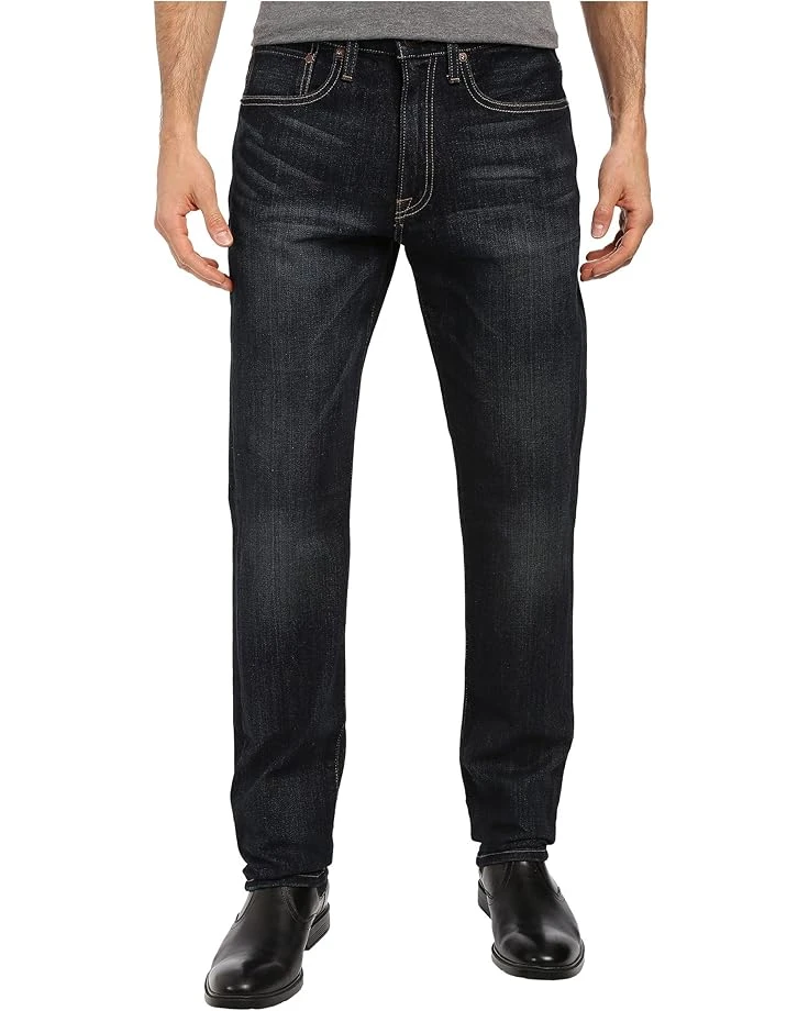 Mid-rise denim jean boasts a slim fit from the hip through the legSKU: #8700887Dark blue wash that boasts sanding and whiskering for a vintage feel.Belt loops.Zipper fly and button waist.Classic five-pocket design.Logo patch at back right waistband.Contrast top-stitching98% cotton, 2% spandex.Machine wash cold, tumble dry low.Imported.Product measurements were taken using size 32, inseam 32. Please note that measurements may vary by size.Measurements: