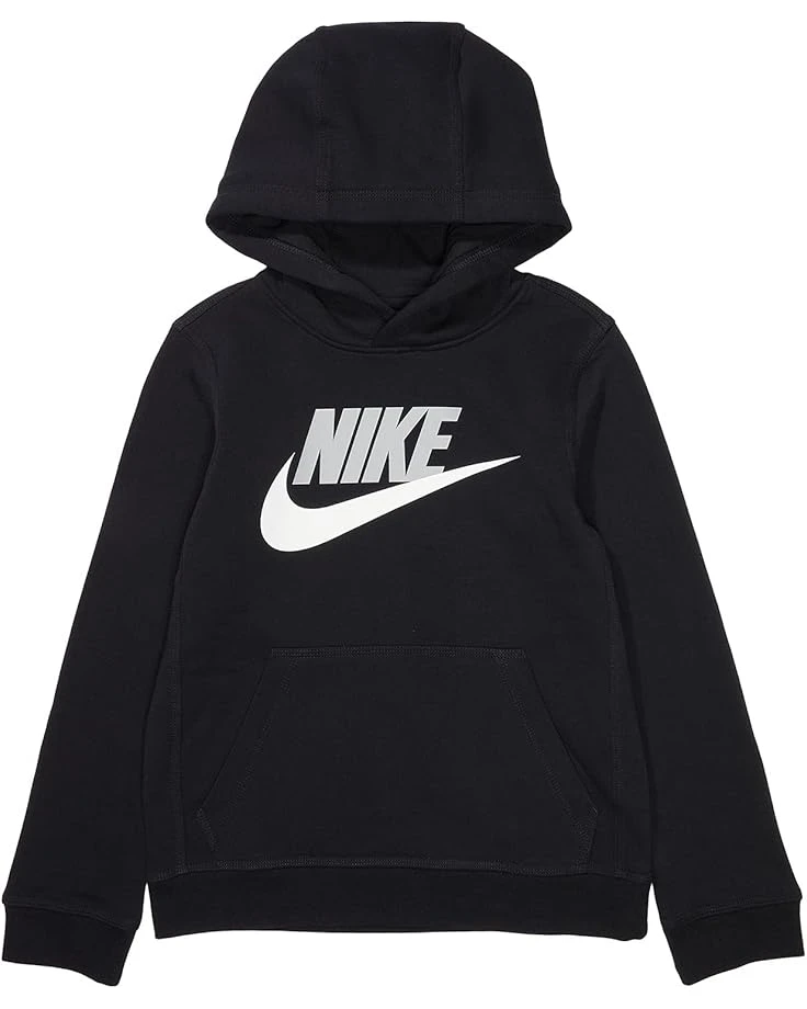 Chilly nights and bitter breezes beware. He’ll be unstoppable in the relaxed fit Nike® Kids Sportswear Club + HBR Pullover hoodie.SKU: #9322710Relaxed fit hoodie boasts knit cuffs, a convenient kangaroo pocket and straight hemline.Screened brandmark at center chest.80% cotton, 20% polyester.Machine wash, tumble dry.Imported.Product measurements were taken using size LG (14-16 Big Kid). Please note that measurements may vary by size.Measurements: