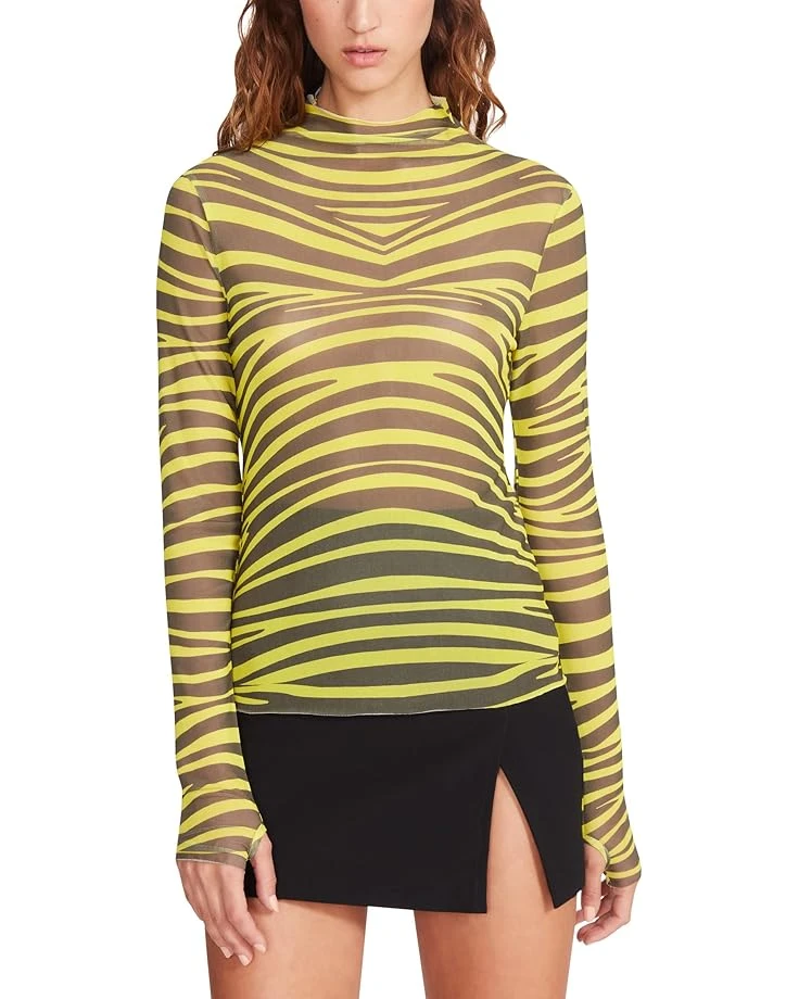 Get going with your retro vibe wearing the bright and beautiful BB Dakota® by Steve Madden® Eliza Top.SKU: #9809382Mesh fabrication with allover eye-catching print.Mock neck and long sleeves with thumb cut-outs.Pullover style.95% polyester, 5% elastane.Hand wash cold, dry flat.Imported.Measurements:
