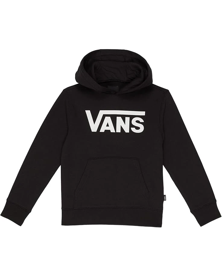 Keep away the fear of chills by wearing Vans® Kids Classic Pullover (Toddler/Little Kids/Big Kids).SKU: #9800018Regular fit.Pullover style.Attached hood.Kangaroo pockets.Long sleeves.Ribbed hem and cuffs.Front brand graphics.Materials: